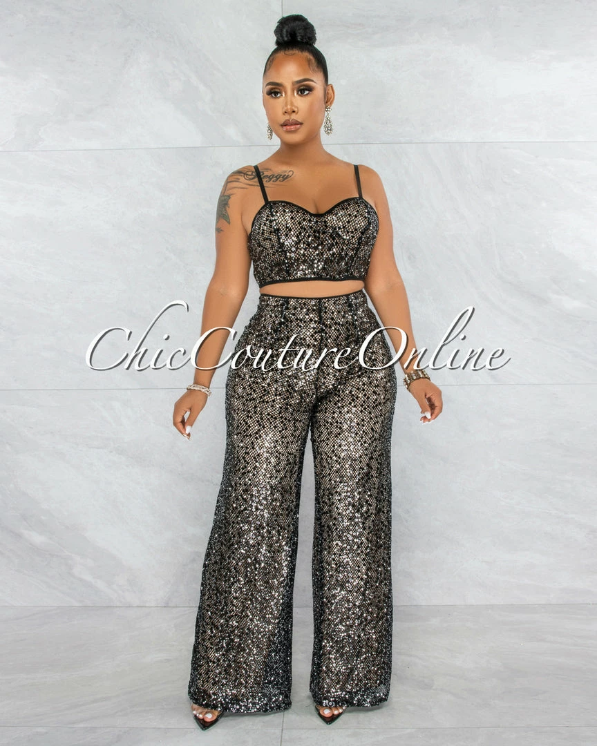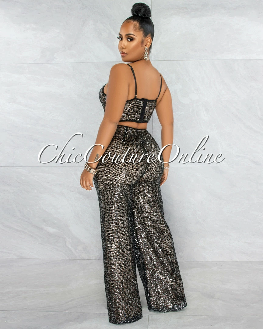 Vendor-unknown Tanith Black Sequins Nude Illusion Fishnet Top & Set JUST IN