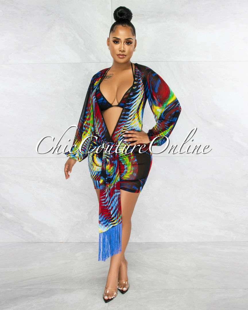 Add some prints to your look with this cover up set. Featuring a 2 piece matching swim for a look we are loving.